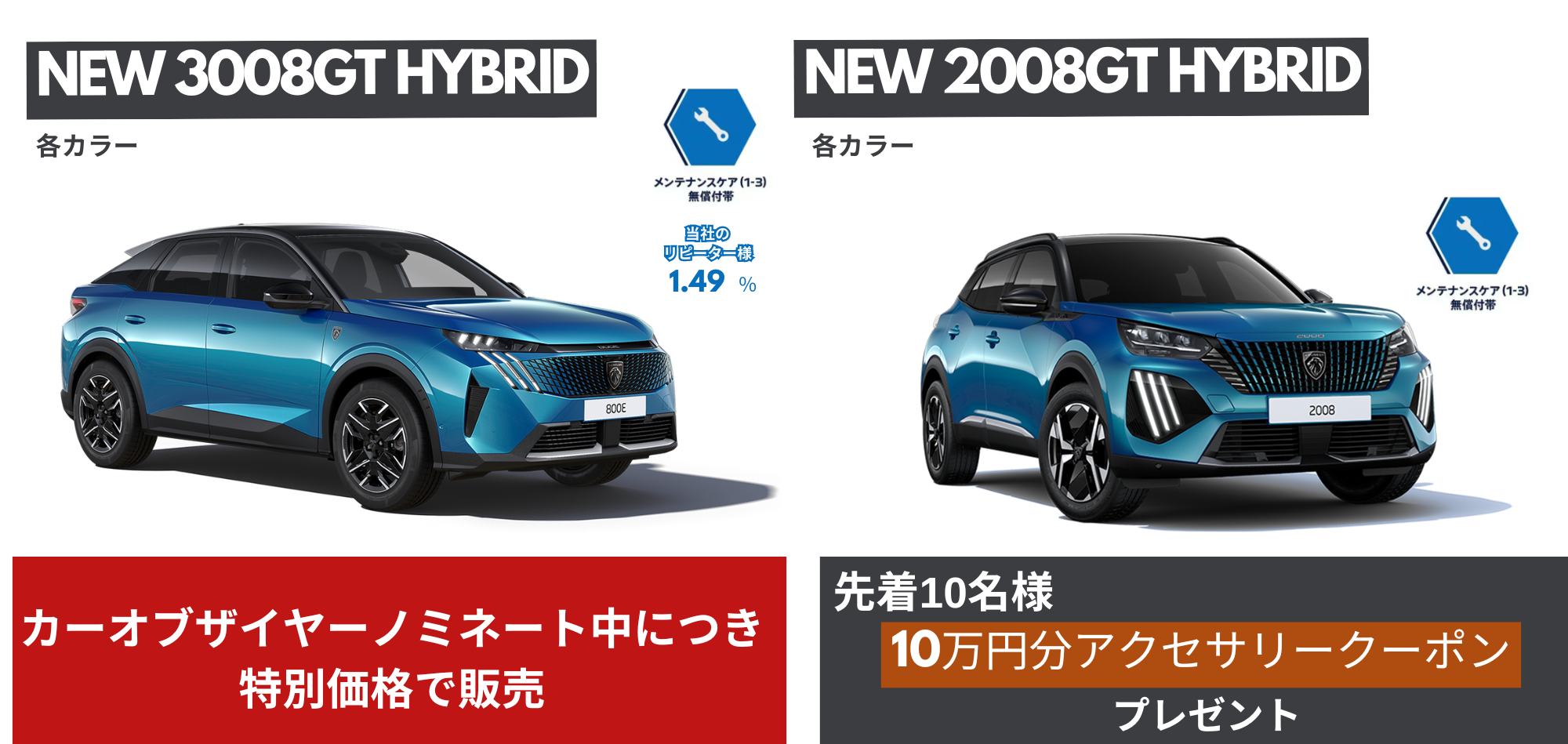 カーオブザイヤーノミネート中につきNEW 3008GT HYBRID特別価格で販売中!